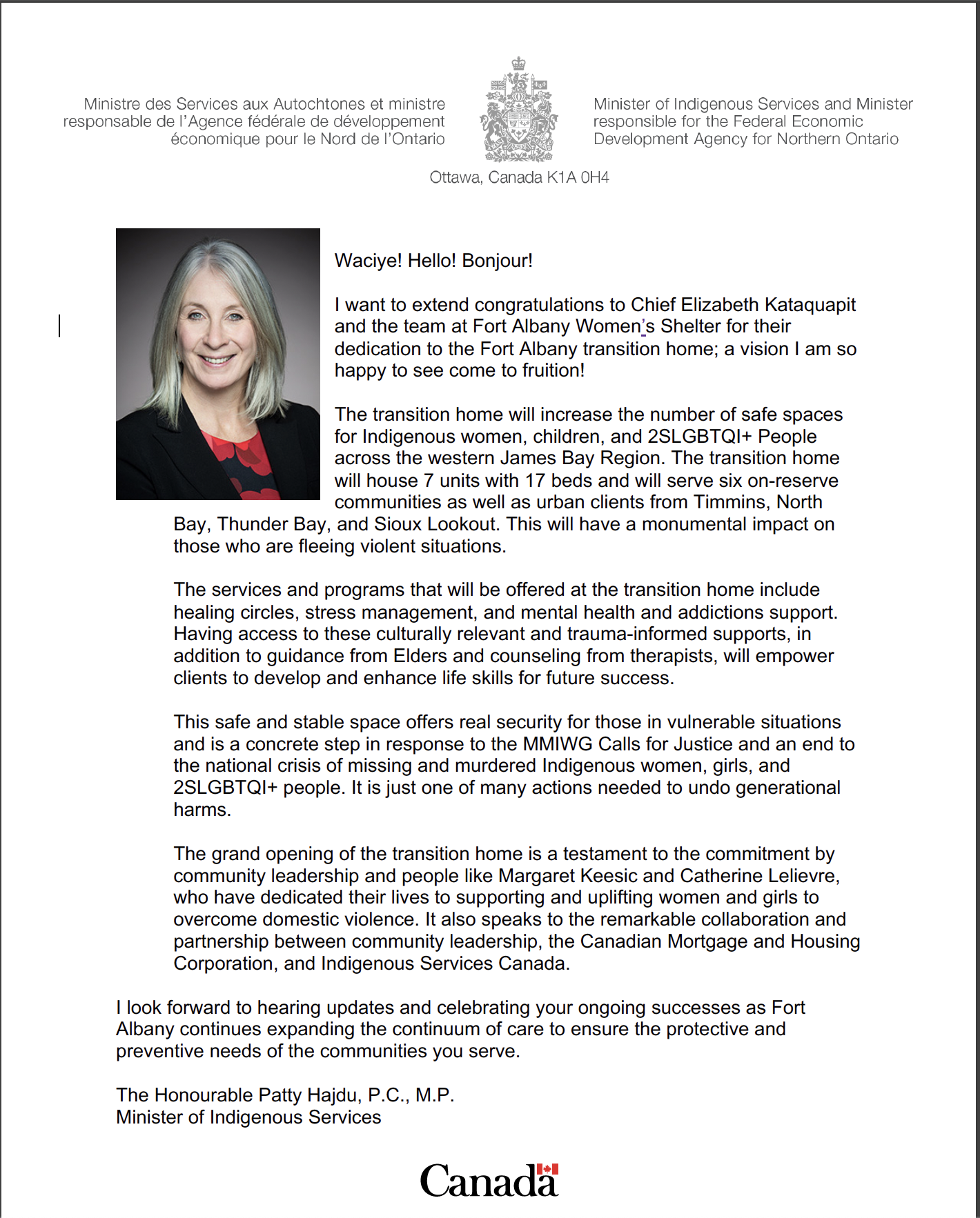 Congratulations! Grand Opening Fort Albany Transitional Housing